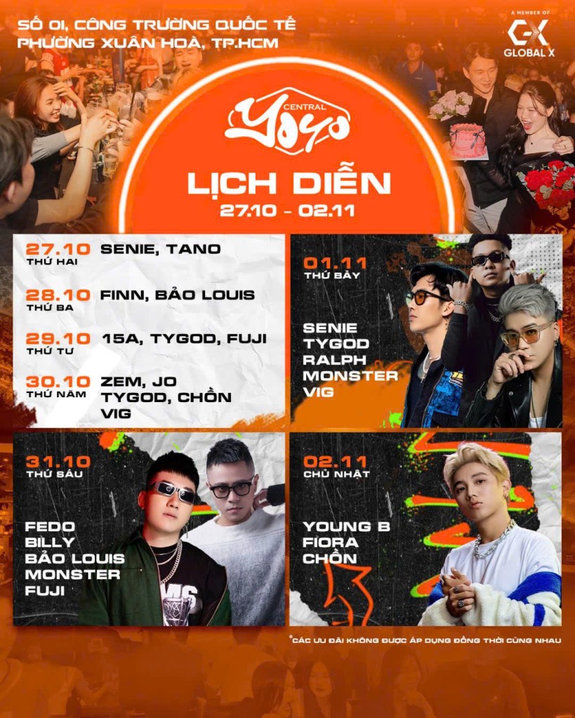 ✨ Thứ 5 (30/10) – Thứ 6 (31/10): DJ Zem, Jo, TyGod, Fedo, Billy, Bảo Louis; MC Fuji, Vig, Chồn.