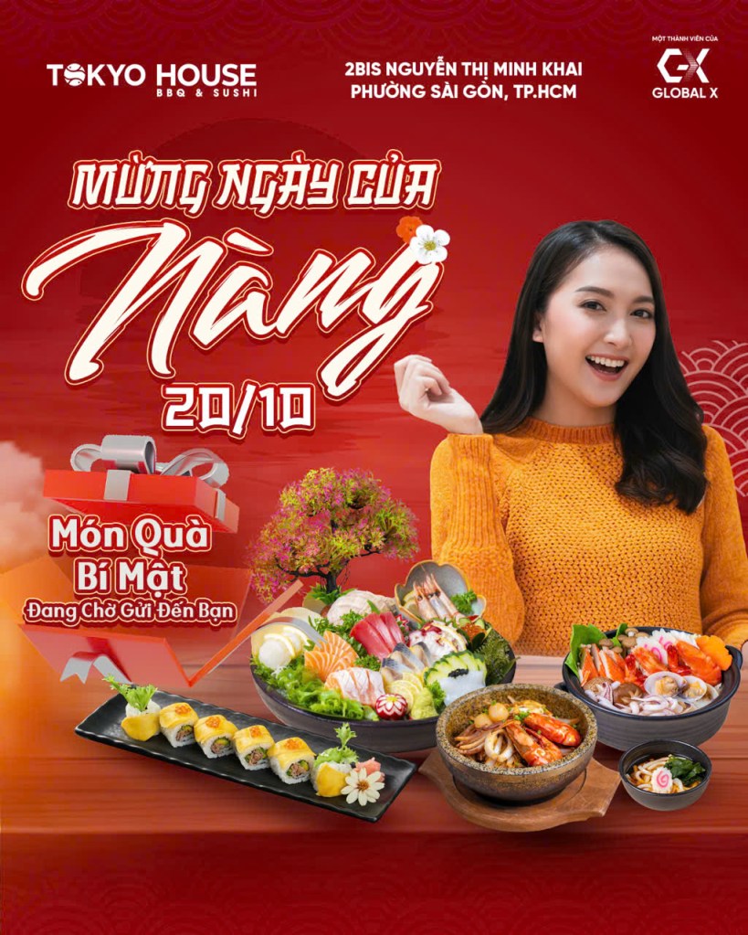 🎉 Nhân ngày Phụ Nữ Việt Nam 20/10 sắp đến, Tokyo House đã chuẩn bị và mong chờ được gửi đến bạn một món quà bí mật, như là một lời chúc dành cho những người phụ nữ tuyệt vời luôn biết cách yêu thương và lan tỏa năng lượng tích cực đến mọi người xung quanh.